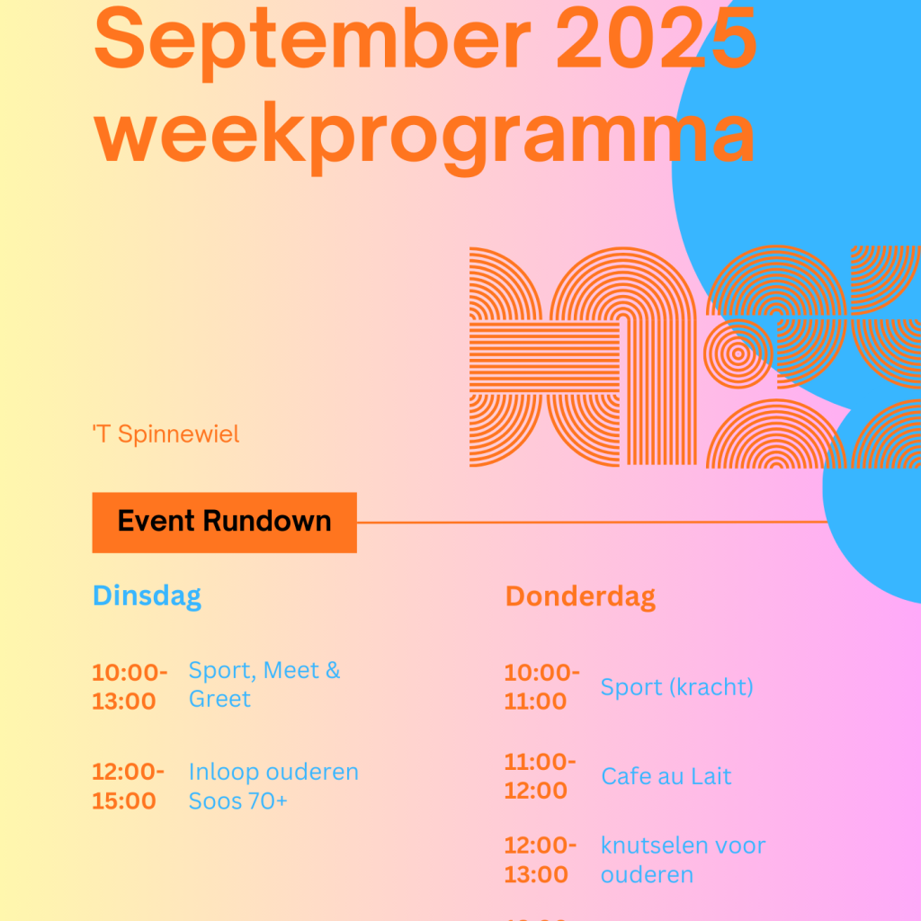 In ons programma hieronder kun je zien wanneer je bij ons kunt binnenlopen voor een kopje koffie of deelname aan activiteiten.